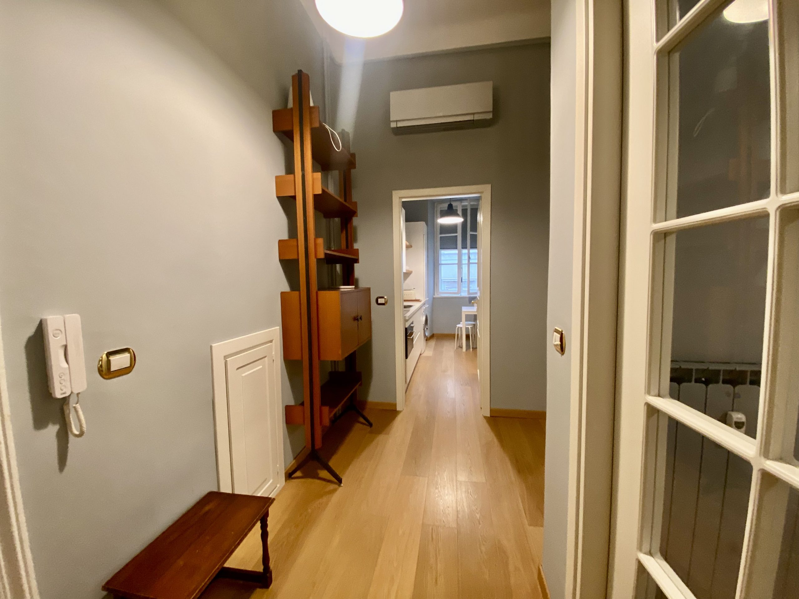 L’immobile è composto da una luminosa zona giorno, un pratico cucinotto, un bagno moderno con doccia e una confortevole camera da letto matrimoniale. Viene affittato completamente arredato con finiture di pregio, offrendo un ambiente accogliente e curato nei minimi dettagli.