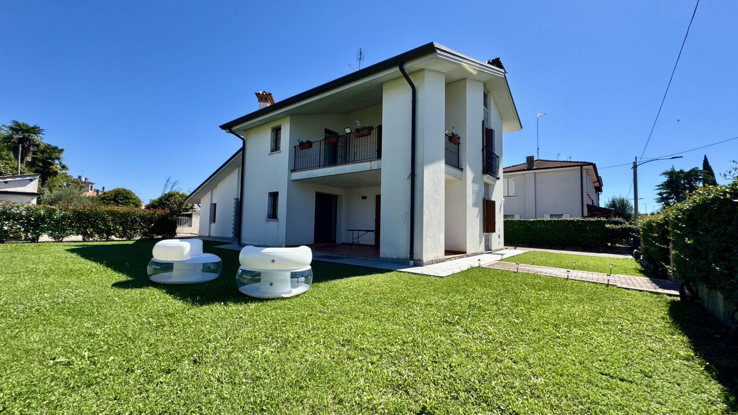 Una villa pensata per accogliere ogni fase della vita familiare, sviluppata su due piani immersi nel verde. All’ingresso un salone che favorisce la condivisione di momenti in compagnia, si collega direttamente a una cucina spaziosa in grado di ospitare lunghe serate tra amici e parenti, oltre a un bagno pratico con una doccia moderna.